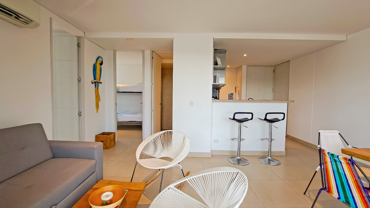🌅 Escapada frente al mar – Ideal para parejas y teletrabajo 👩‍💻👨‍💻 Descubre la calma del mar y trabaja con una vista inspiradora. Este apartamento de 73 m², amplio y luminoso, está diseñado para que combines descanso y productividad sin renunciar al sonido de las olas. Ubicado frente a la playa, en una de las zonas más seguras de El Rodadero, estarás a pasos de restaurantes, cafés y supermercados, y a solo 20 minutos del aeropuerto.