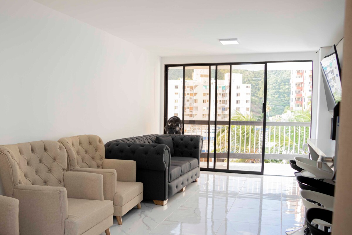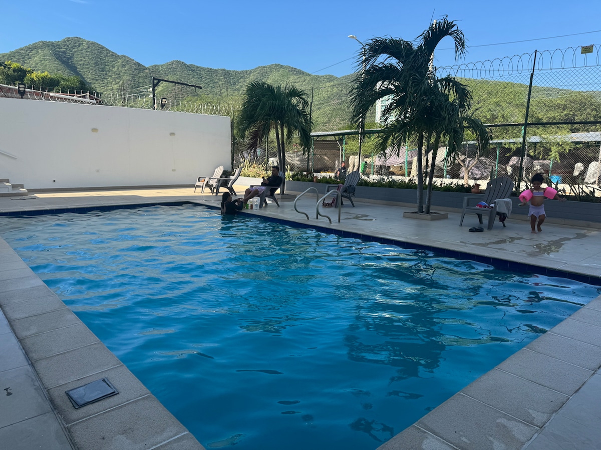 IMPORTANTE LEER TODA LA INFORMACIÓN ANTES DE RESERVAR GRACIAS Hermoso apartaestudio a 20 minutos del aeropuerto de Santa Marta, cómodo y fresco ideal para pasar unas vacaciones de lujo. Consta de zonas comunes muy cómodas y acceso directo a la playa para disfrutar a gusto. Puedes encontrar restaurante, bar, piscina, jacuzzi, BBq y cancha de fútbol en las zonas comunes. Anímate a disfrutar de un momento muy agradable en unas instalaciones de lujo.