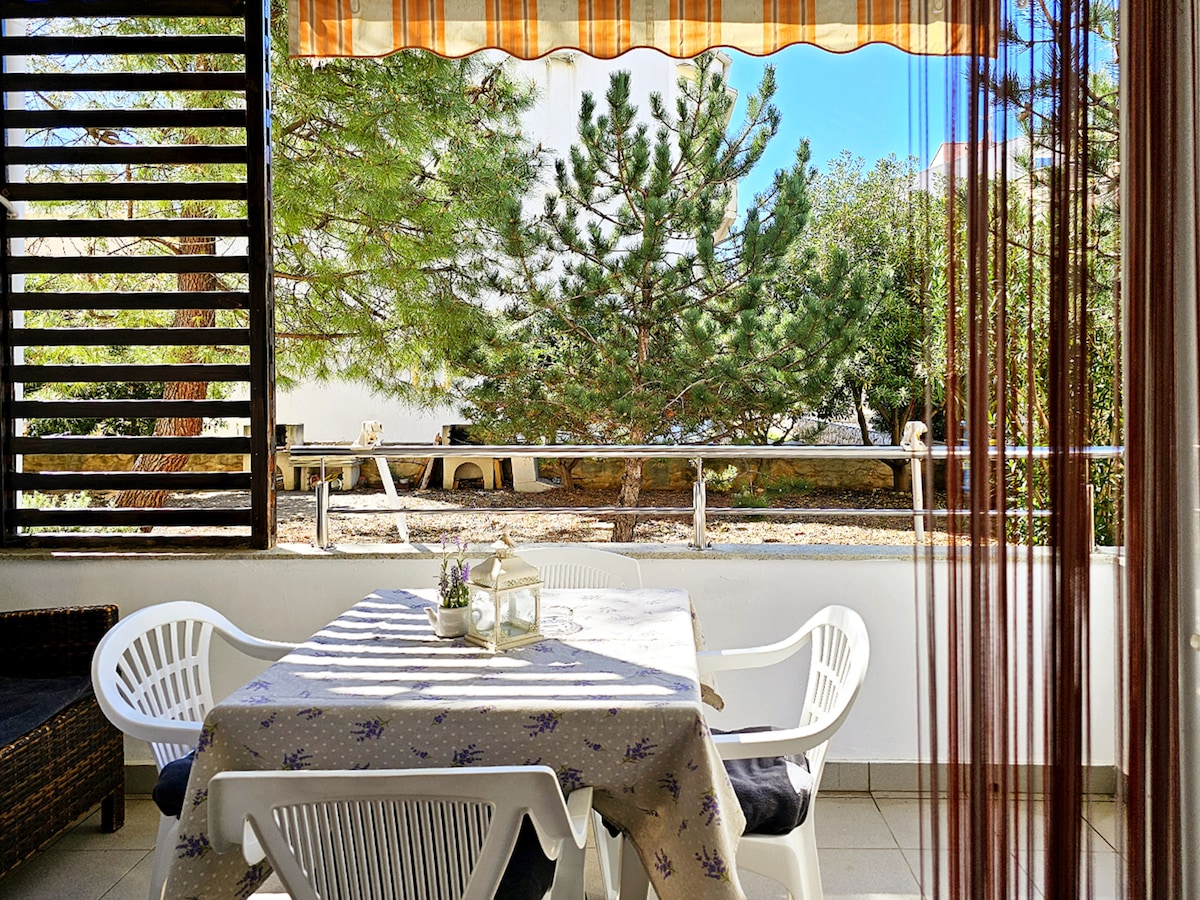 This two-bedroom apartment offers a cozy and relaxing stay for groups of up to 4 people. Having a dining area, kitchen, bathroom, and terrace of 10 square meters. In total 55 square meters of relaxing and cozy space with all the basic accessories like air-conditioning, wi-fi, flat screen tv, shared outdoor grill, and parking place. Bed linen and towels, pottery and cutlery included, Located in the vicinity of the town center, with supermarkets, restaurants, and bars nearby.