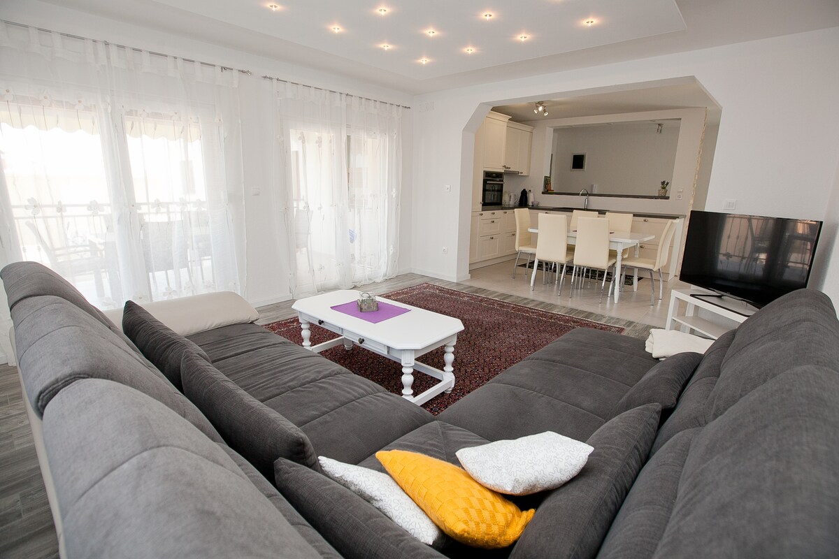 Enjoy your stay in our MODERN,VIVID and RELAXED apartment very NEAR THE SEA with FREE parking and FREE WI-FI, surrounded by 2 popular BEACHES, situated in SAFE neighborhood. Spend your days relaxing and chilling at one of the beach bars in 5 minutes walking distance at popular sandy beach BABE. Spend your nights partying on ZRCE BEACH. In just 5 minutes walking distance, a bus will take you there directly. Come with family and enjoy vicinity of great beach Great choice for FAMILIES and FIRENDS.