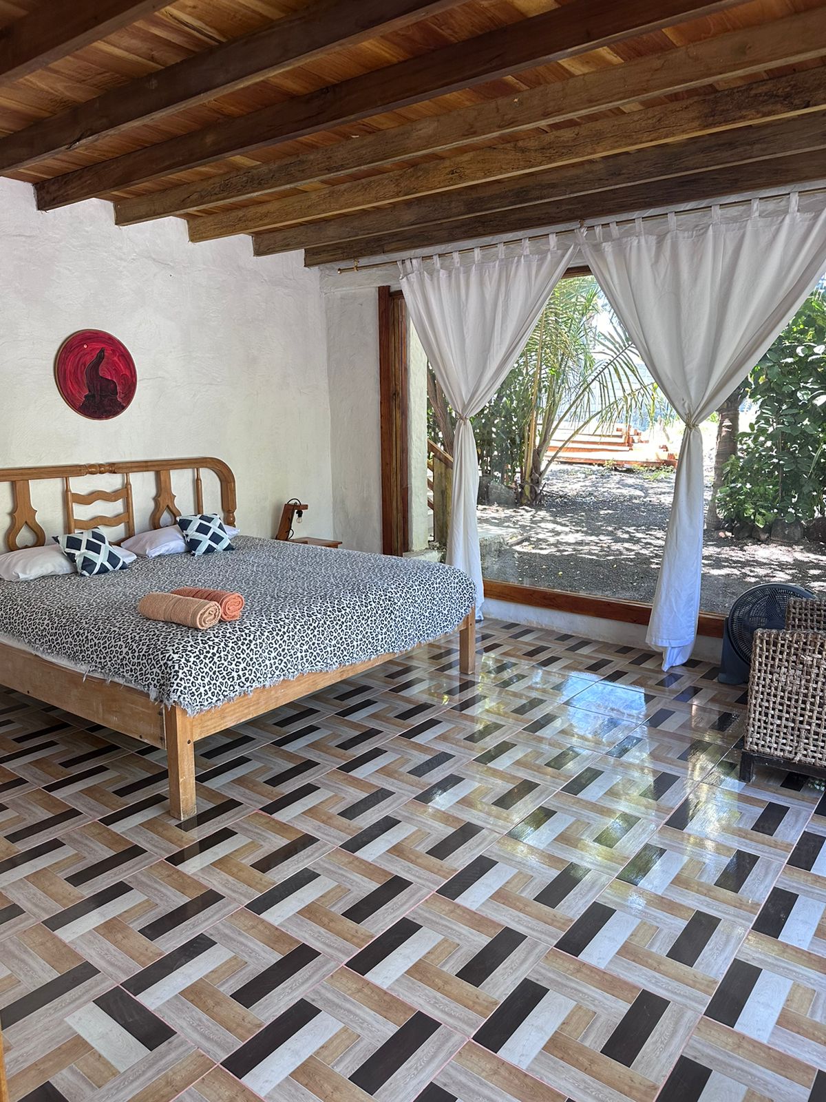 Habitación acogedora y amplia, perfecta para pasar una vacaciones en pareja en Isabela, ubicada a 8 minutos de la playa, mercado, tiendas, parque central, muelle, Desconéctate de tus preocupaciones en este espacio tan amplio y sereno rodeado de areas verdes y espacios de recreación, dentro de la propiedad contamos con un Bar Restaurant, cocina para uso de los huéspedes, piscina y hamacas.