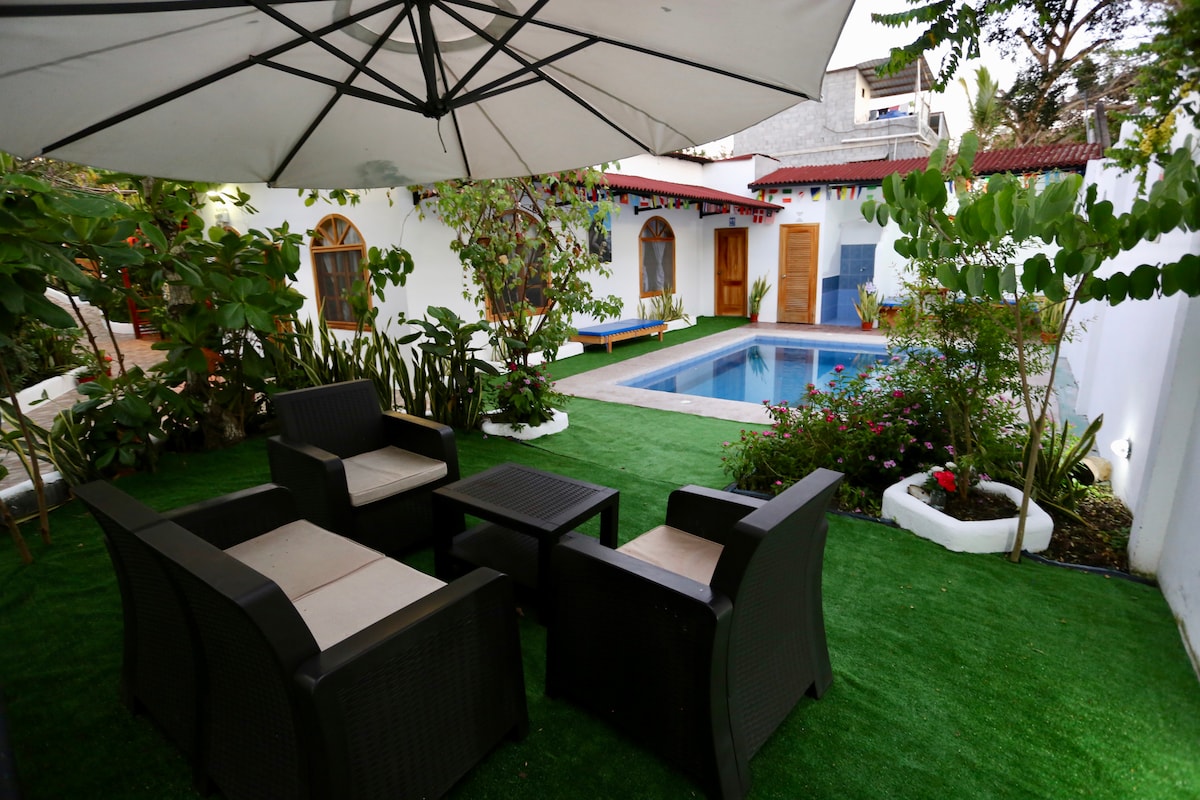 Patio Room with Garden View (#1) The Galapagos Pearl is a charming bed and breakfast retreat in a quiet, residential neighborhood in Puerto Ayora, Santa Cruz Island. It is located one and a half blocks away from Charles Darwin Avenue, the main tourist street of downtown. It is a convenient walking distance from the heart of town and a block and a half away from the sea.