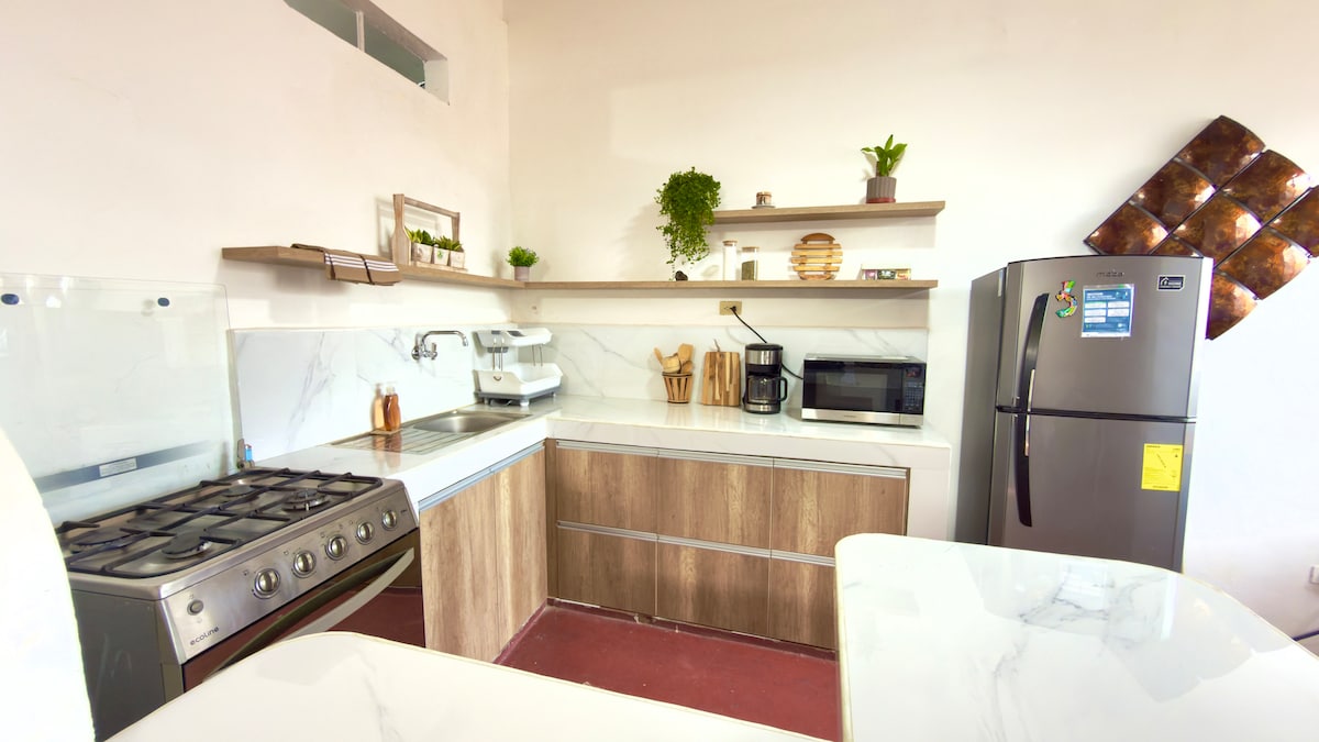 Cómodo apartamento renovado, con una habitación independiente, baño privado y aire acondicionado. Cuenta con una cama y colchon a estrenar con cortinas black-out para un descanso óptimo, además de un sofá cama ideal para un huésped adicional. La cocina esta equipada con utensillos basicos para uso diario. Ubicada a pasos del centro y a solo 4 minutos a pie del muelle de pasajeros, muy cerca del Malecón. Perfecta para descansar y disfrutar de la zona.