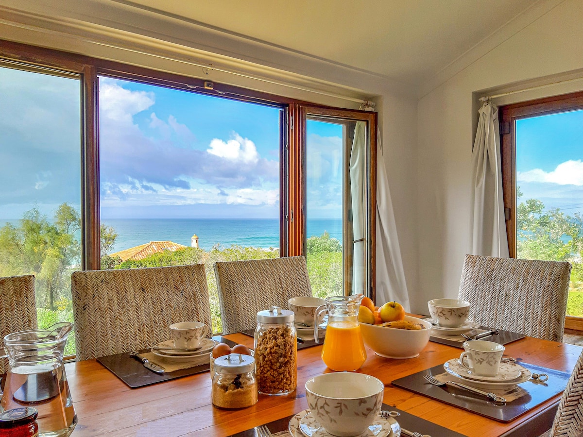 Relax in a Beachfront apartment surrounded by peaceful nature with stunning Ocean/Mountain views. Why you’ll love it: - Ocean/sunset view - Spacious Pool set among lush greenery - Large organic garden with fresh vegetables, herbs, and tea leaves - 12 minute walk to Guincho Beach (1km away) - Private patio with outdoor dining table - Located by a nature reserve with scenic walking trails - Just 2 minutes from top-rated restaurants and authentic, affordable local cuisine - Fast 200Mbps wifi
