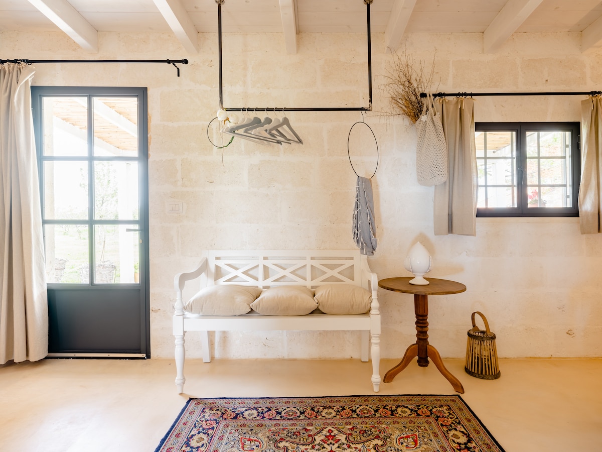 Casa Coratina è un appartamento indipendente dallo stile semplice e accogliente, situato all’interno della nostra tenuta agricola, a pochi minuti dalle spiagge di Gallipoli. Pensato per quattro persone, grazie a un letto matrimoniale al piano inferiore e a un soppalco aperto con due letti singoli. L’appartamento dispone di una cucina attrezzata, un bagno privato con doccia e una zona giorno funzionale, oltre a uno spazio esterno dedicato con tavolo per mangiare all’aperto.