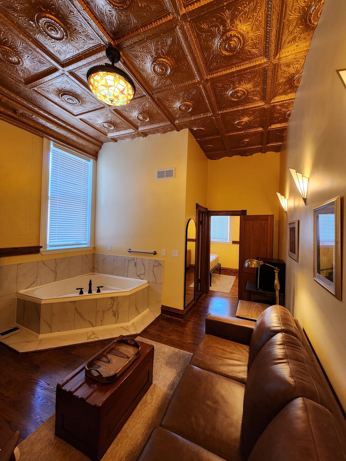 Ulysses Suites has just been completed inside the historic J. G. Schmohl building in the heart of downtown Galena, located at 213 to 217 S. Main Street. The location is walking distance to all the best restaurants and shops. We have 7 suites and a beautiful lobby that are modern and luxurious, with lots of historical character and texture as a nod to its previous existence as the Grant Hotel from 1895 to 1933. Suite 203 is almost 1400 square feet and is located on the 2nd floor.