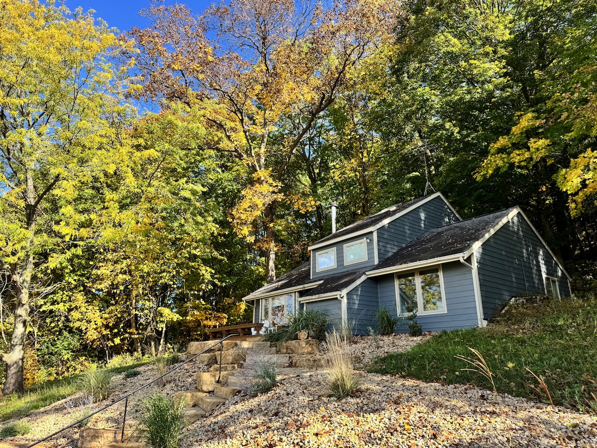 Unique "tree house" - an octagon tiny house, surrounded by the woods! 2 bedroom, 2 bathroom home you can enjoy the views of nature all around, with floor to ceiling windows. One king bed, one queen bed. Modern comforts with fun flash blacks. Private hot tub and firepit look into serene woods! Sit by the indoor gas fireplace and enjoy our record collection. Soak in a Japanese soaking tub. Enjoy fall colors or watch snow fall! Community indoor poor, seasonal outdoor pool, gym access