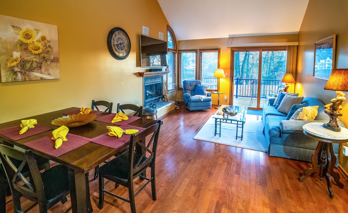 ⭐King bed with plush bedding in a peaceful, private setting ⭐Wood-burning fireplace — perfect for cozy evenings together ⭐2-minute drive to the North Golf Course, driving range, & Stonedrift Spa ⭐Wooded nature views & tranquil surroundings for a relaxing escape ⭐Just 12 minutes to downtown Galena — excellent shopping, dining, & sight-seeing ⭐Access to Owner’s Club amenities including indoor pool & fitness center ⭐15 miles to Chestnut Mountain Skiing ⭐2 Full bathrooms & newer full size sofa bed