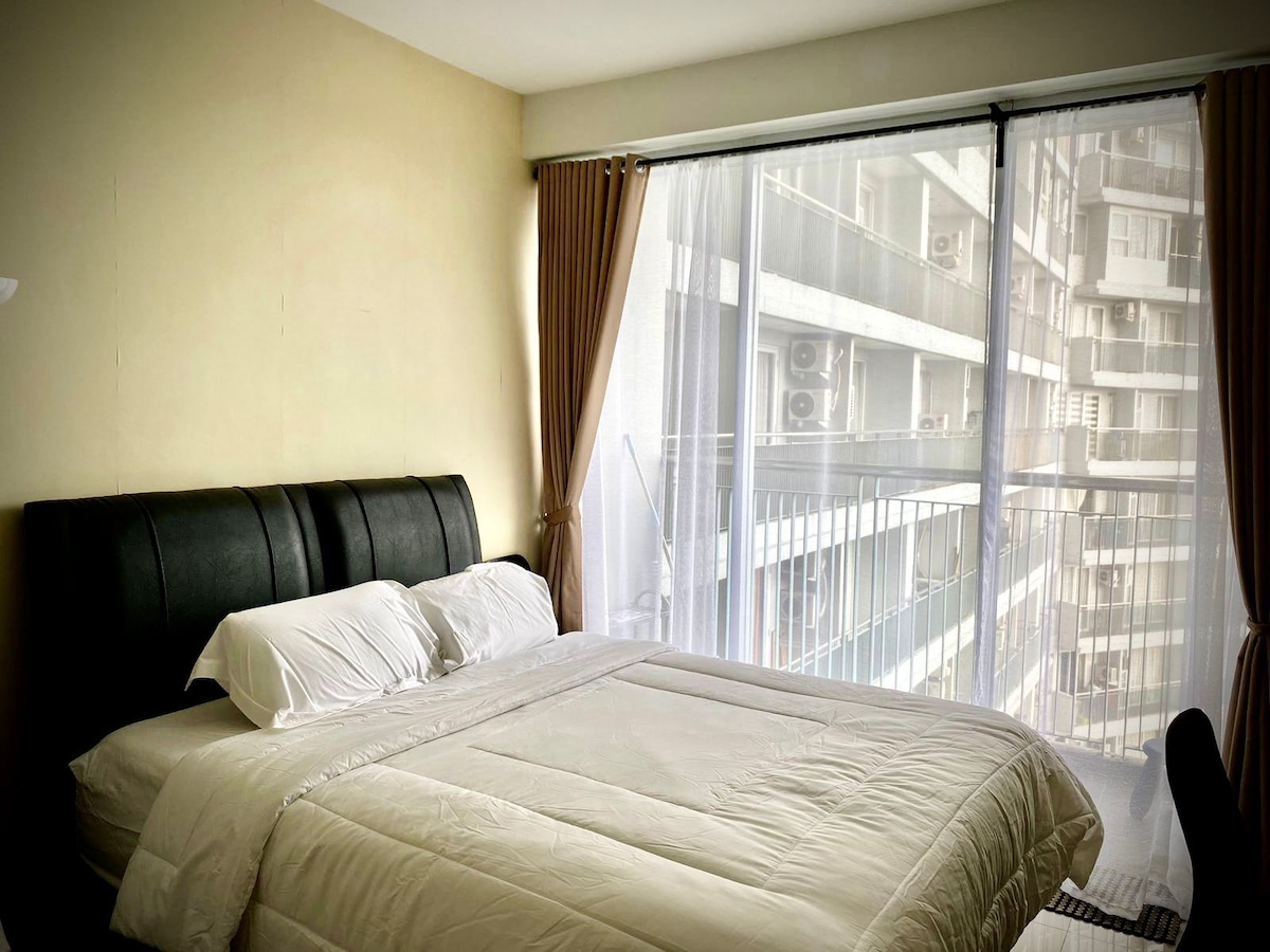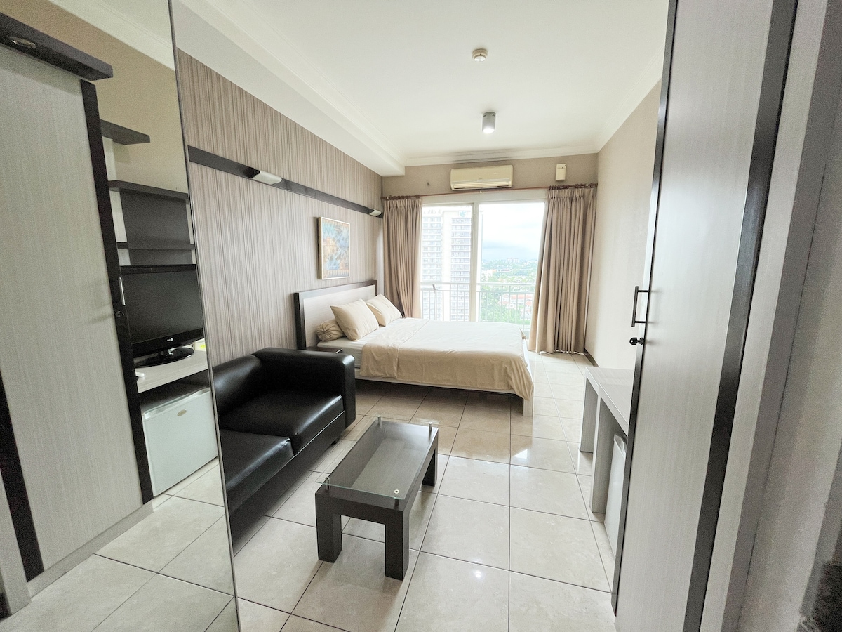 Immerse yourself in the vibrant heart of Bandung at this stylish studio on 10th floor of Parahyangan Residences. Enjoy modern amenities like a fully-equipped kitchen, high-speed Wi-Fi, and a 50" smart TV with Netflix. Indulge in resort facilities, contactless check-in, and nearby conveniences for a perfect staycation, holiday, or work-from-home experience. Now featuring a Reverse Osmosis drinking water, food waste disposal and new washing machine.