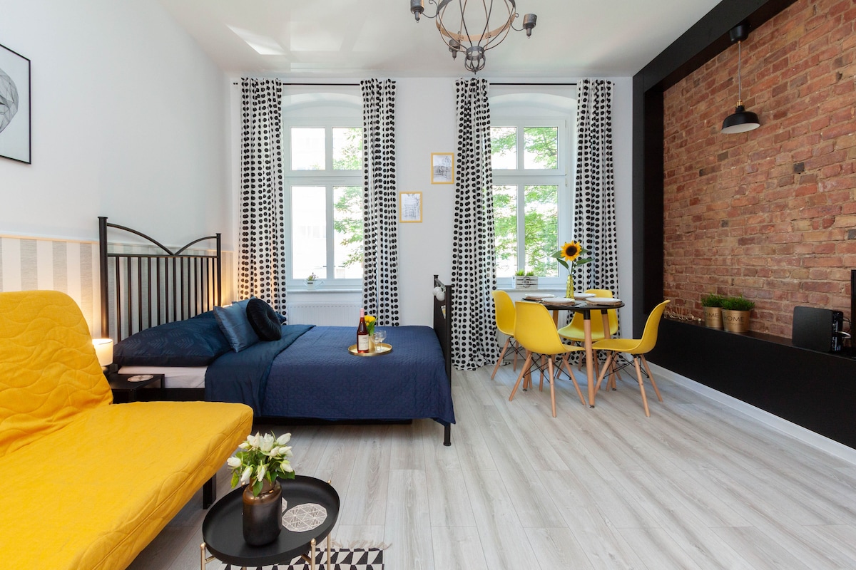 Our beautiful, unique studio apartment is located in one of the best spots in Szczecin. Walk just down the street to the Castle and the Philharmonic. In the middle of the Old Market, Old Town, boulevards, port, close to shopping centres. Everything within walking distance, including restaurants, pubs, and coffee shops. This warm, fresh, modern apartment is on the 3rd floor of a new built building. Best location for a City Break in Szczecin.