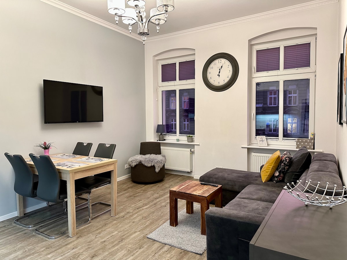 Brand new (commissioned in February 2020), spacious (42m2) and modern apartment for 4 people. Previously luxury urban residence of Stettiner aristocracy therefore   architecture, combining the classic of a 100-year-old building with modernity, interior design and colors of the apartment, refer to the climate of the residence from the turn of the 19th and 20th centuries..