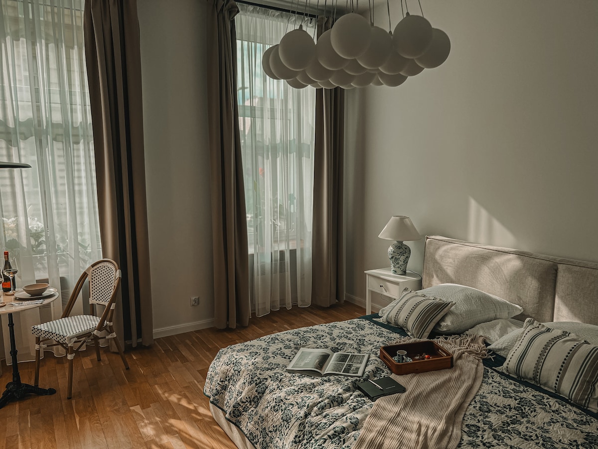 Cozy place in the center of Szczecin. Good for a couple, family, friends or people travelling for business. In the nearby: grosery, cafes, restaurants, public transport, railway and bus station. Walking distance to the old town and waterfront. The apartament is bright and cozy with modern &vintage finishing. Consists of 2 rooms: living room + sleeping corner with access to a lovely balcony and bedroom with double bed and piano. Inbetween the rooms modern kitchen and new bathroom.