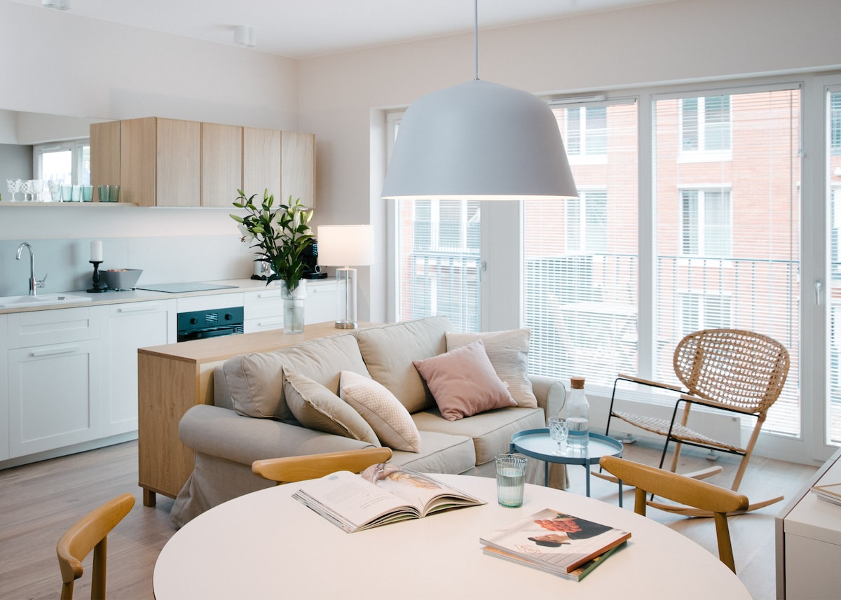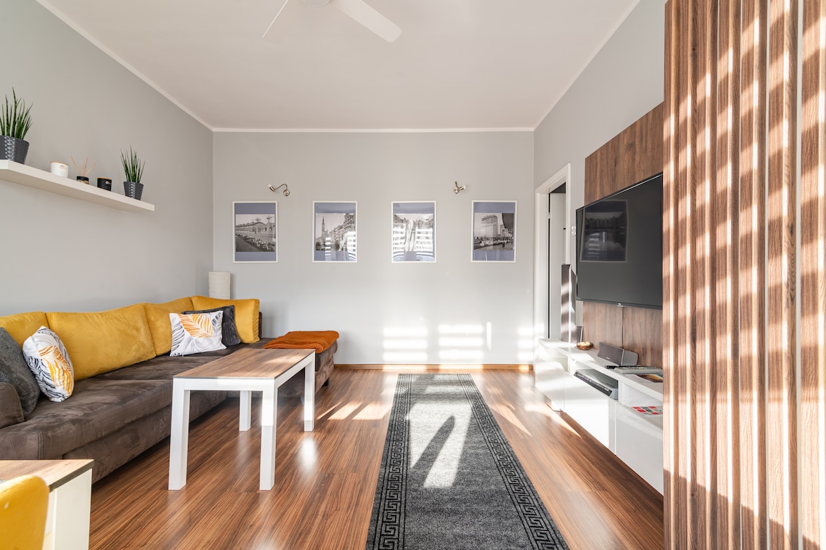 Enjoy a peaceful and stylish stay at this centrally-located place. A newly built, beautifully furnished apartment, perfect for a quiet stay in the heart of Gdańsk. Located on the greenest side of the city center, right next to Góra Gradowa. Although historical and cultural sights, shops, and restaurants are only a 10-15 min walk away, the area feels peaceful and secluded. The place offers a unique, cozy, and very comfortable design, perfect for a couple and a weekend escape.