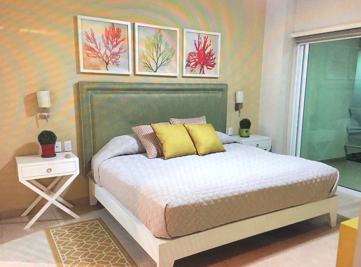 Habitación privada nueva y totalmente equipada, ideal para descansar o trabajar cerca del mar. Cuenta con cama King Size, baño completo, cocineta equipada, TV y balcón privado. Ubicada a una cuadra de la playa, dentro de un condominio con alberca, área de ejercicio y ambiente tranquilo. Comodidad, ubicación y descanso en un solo lugar.