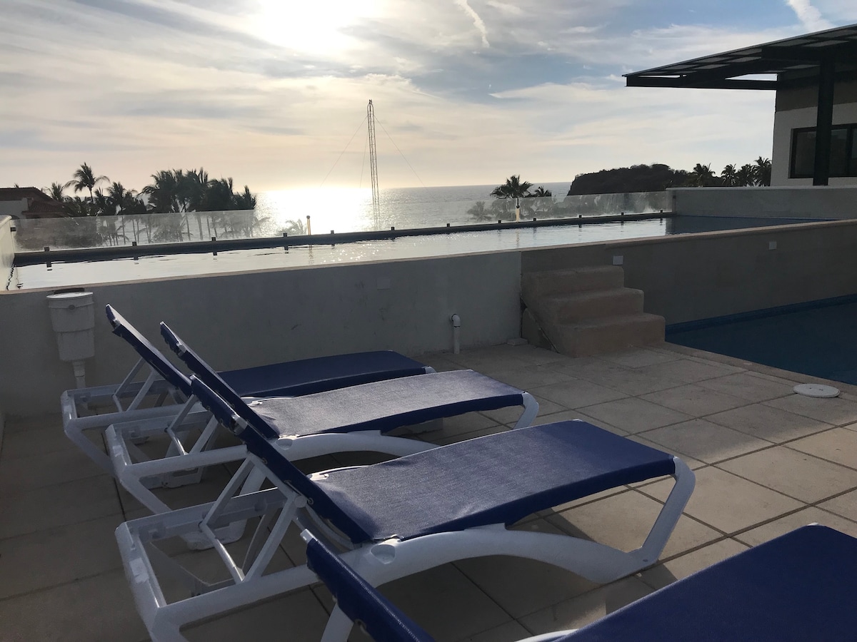Bienvenidos a este paraíso tropical frente al mar, Quintas del mar un condominio ideal para familias, amigos y amigas, nuestro condominio cuenta con hermosas vistas a la playa, alberca y jardines tropicales que puedes disfrutar desde la sala, cocina ,tres recamaras y balcones. Aquí podrás disfrutar de la alberca , áreas comunes, palapas, sillas y cómodos camastros en la playa y área de alberca hermosos atardeceres y amaneceres,si practicas tenis tenemos cancha y también un gimnasio.