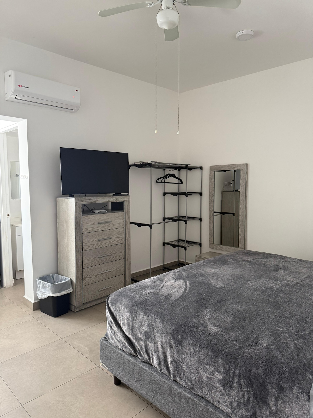 Departamento con 2 recámaras (1 con cama queen size y la otra con dos individuales) y un baño completo. Super cómoda y espaciosa sala donde pueden dormir dos personas extras! Lavandería, cocina, WIFI y TV disponibles. Completamente climatizado. Great apartment with 2 bedrooms (1 queen bed the other 2 individuals) and 1 complete bathroom. Spacious and comfortable living room that can accommodate 2 extra persons if needed!! Laundry room, kitchen, WIFI and TV available. Completely Air Conditioned