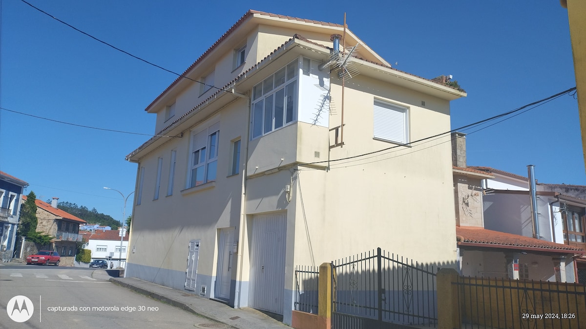 Casa ideal para pasar , días o semanas en sitio tranquilo ,cerca del casco histórico a unos 500 metros del centro urbano y 200 metros del paseo marítimo y la playa esta a 1 km y medio por el puente ría de noia además zonas como Portosin, Esteiro, SIerra de Outes a menos de 10 minutos .Comunicada con SANTIAGO por autovía ,25 minutos,campo de golf también 10 minutos .NOIA que tiene un casco histórico precioso y sobre todo su alameda ,villa siempre con un gran ambiente sobre todo en verano