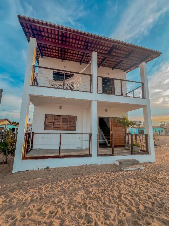 Linda casa em estilo grego, com vista completa para a face mais bonita do mar de Galinhos. Inspirada nas vilas mediterrâneas, possui uma charmosa sala aberta, três amplos quartos (1 suíte) com ar condicionado, um banheiro completo, ducha externa, varanda com redes, cozinha equipada. Com o visual de tirar o fôlego, as águas turquesas do Nordeste convidam ao mergulho e o vento constante é excelente para prática de kitesurf. Espaço ideal para descansar, estar com a família ou trabalhar home office.