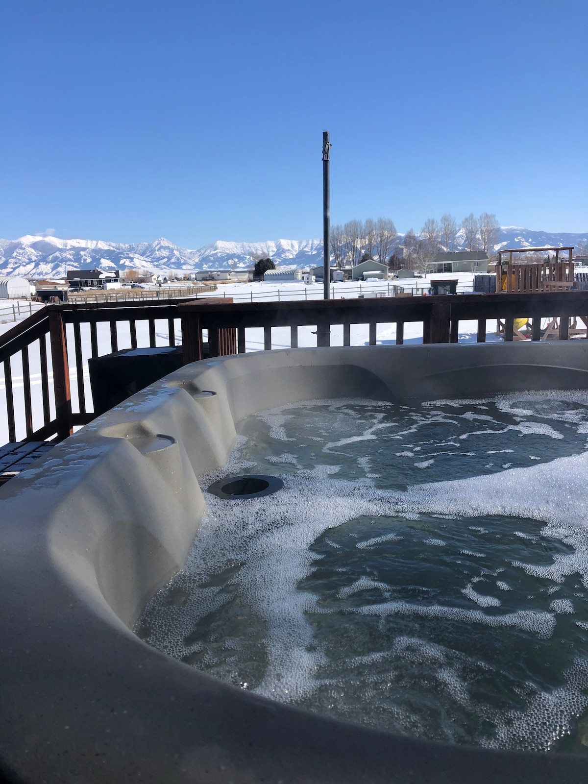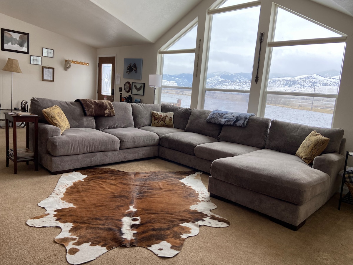 Enjoy views of the Bridger Mountains off the deck. This property is situated on a 10 acre horse farm just 15 minutes west of Bozeman. 20 minutes from the airport & 5 minutes from numerous restaurants and coffee shops. Sit and relax as horses meander about and start their day. 2minutes north is Cottonwood Hills Golf Course. Fish in the Gallatin River or soak in Bozeman Hot Springs just 5 minutes away. Fantastic hiking, biking, whitewater rafting, skiing and many other outdoor activities