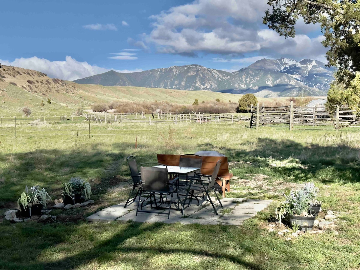 This Cabin has a wonderful, welcoming, and special feel to it. Incredible views across Paradise Valley, the Yellowstone river, and the high Mountains beyond... Immaculately clean and comfortable. Quiet un-pressured area and environment. Deer on the front lawn in the morning, horses across the way in the pasture... This Cabin along with our Cabin #2 (Airbnb 6297238) is situated on our small ranch of 49 acres. Hiking in any direction; Yellowstone 28 miles away; Chico Hot Springs 10 minutes away.