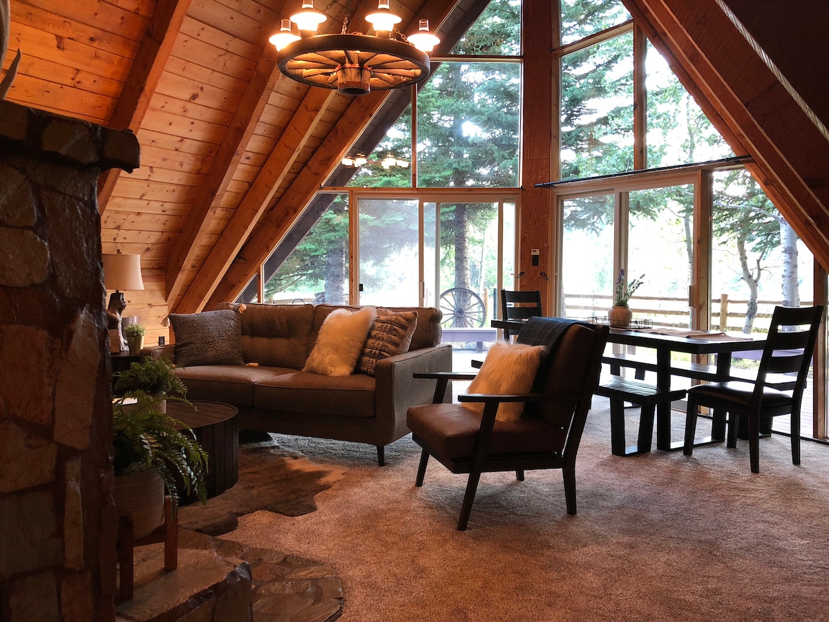 Quiet Deck View A-Frame Cabin Near Yellowstone
