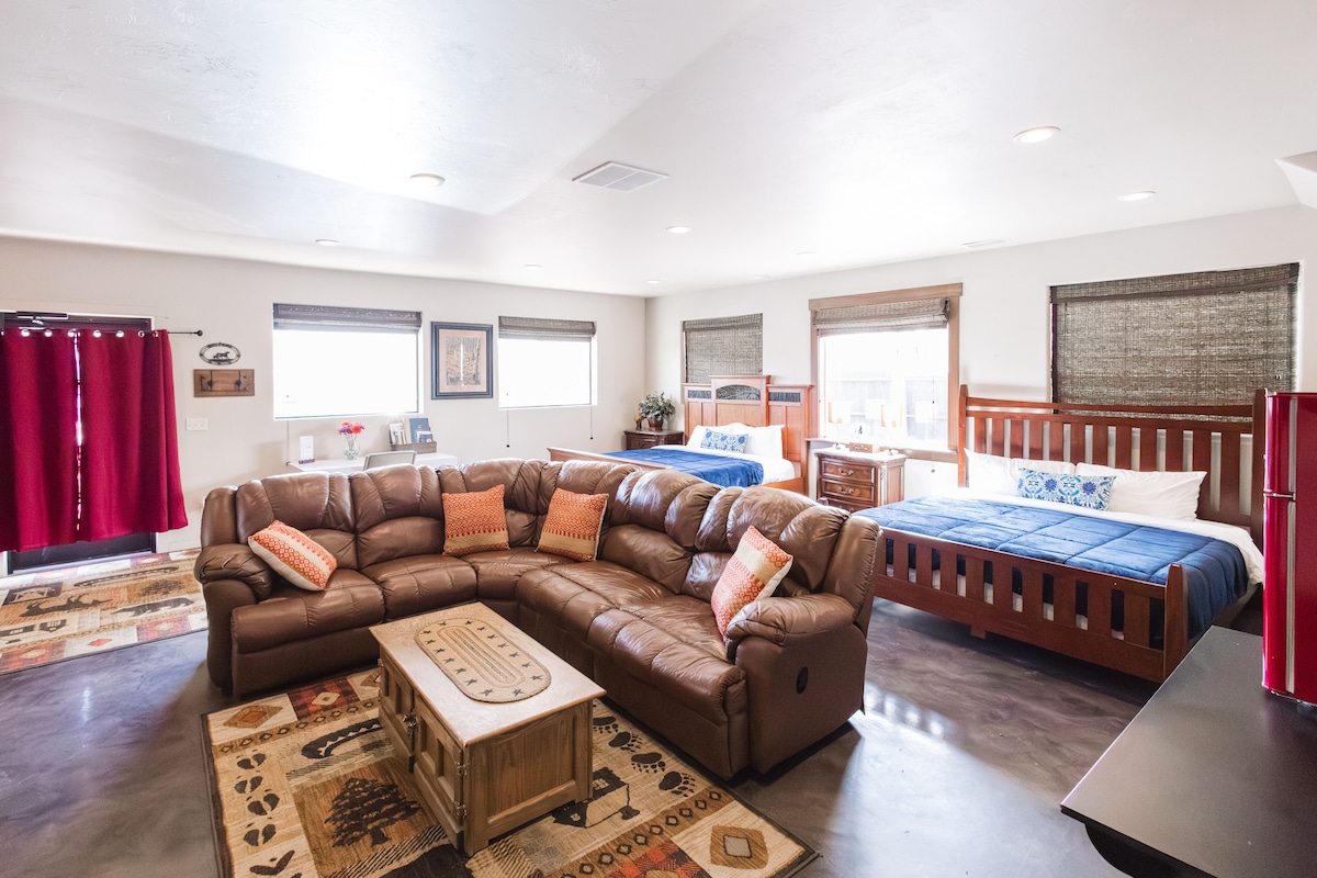 Set in the convenient Four Corners area, this thoughtfully designed 1-bedroom, 1-bath apartment offers a comfortable and relaxed home base just outside of Bozeman. Ideal for up to four guests, the space features two king beds, creating a flexible and spacious sleeping arrangement for families, friends, or extended stays. Located just beneath the owner’s home, the apartment has its own private entrance and a quiet, tucked-away feel. Inside, the space is simple, clean, and designed for comfort, with blackout curtains for restful sleep, climate control for year-round ease, and an inviting living area to unwind at the end of the day. After exploring the area, settle into the large leather sofa and enjoy a movie on the oversized 82-inch TV, or prepare a light meal in the well-equipped kitchenette. Downtown Bozeman, the airport, and year-round recreation are all within easy reach, making this a practical and comfortable place to stay for both work and getaway trips. The space The apartment is laid out to balance comfort and functionality, with open living space and thoughtful separation between sleeping and relaxing areas. The kitchenette is equipped for simple, everyday meals, including a mini fridge, microwave, coffee maker, toaster, and essential cookware. Two king beds provide a restful, hotel-like experience, complemented by blackout curtains for a quiet and restorative night’s sleep. The living area offers a large leather sofa and an oversized TV, creating a comfortable place to relax indoors. The full bathroom is bright and spacious, featuring a new shower, large vanity, and ample storage. A dedicated thermostat allows guests to control both heat and air conditioning, ensuring comfort in every season. Parking is easy and convenient on the oversized gravel driveway just steps from the private entrance, with additional space available for trailers, campers, or recreational equipment if needed. Guest access Guests have private access to the apartment through a separate entrance. Other things to note For larger groups, the adjacent apartment can also be booked. A connecting door allows the two spaces to be opened into one larger layout when reserved together.