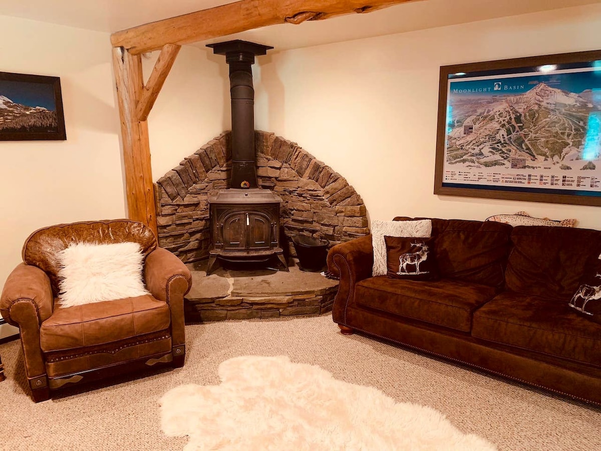 This charming cabin is a 10 minute drive from Big Sky town and 20 minutes to the slopes. It’s a stone's throw away from the Gallatin River. The upstairs bedroom has a queen bed and AC. The basement bedroom has two twin over double bunks. The kitchen includes a Viking range. A small dining room allows for family meals. The upstairs living room provides room to lounge and enjoy mountain views. The basement living room has TV and a cozy wood burning stove. Wifi. SORRY, NO PETS DUE TO ALLERGIES.