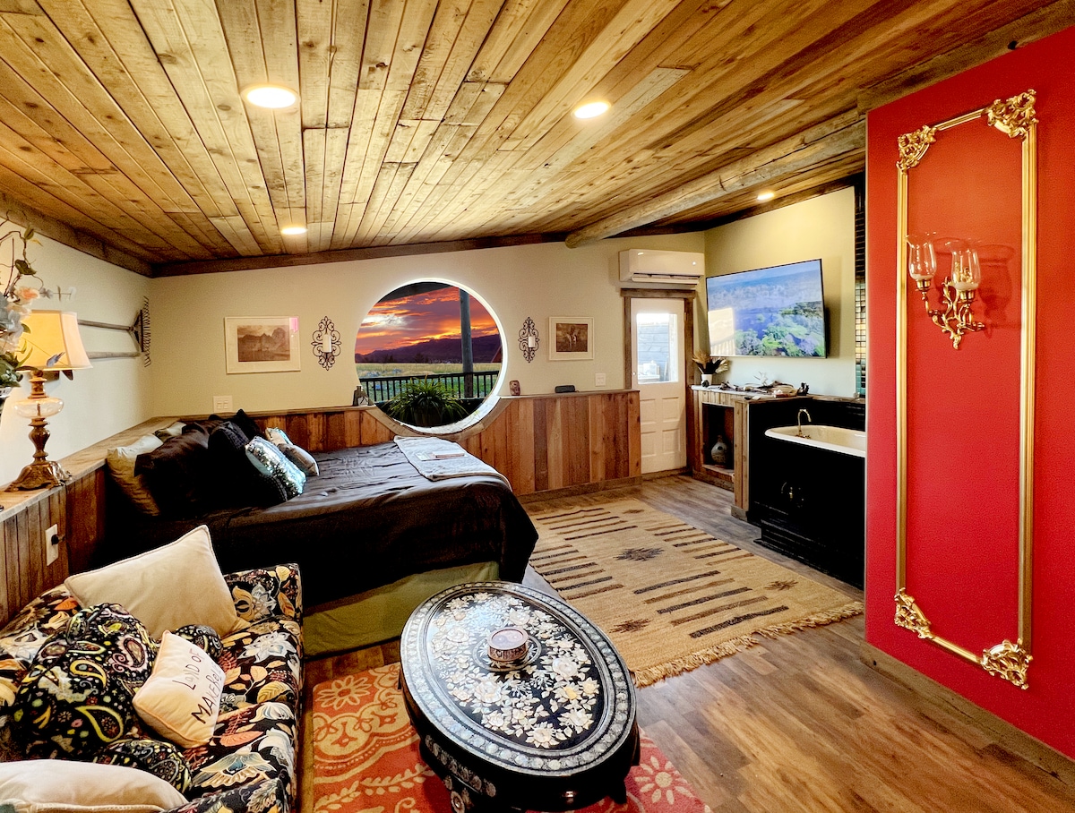 Newly constructed, 675 sq ft Sunrise Silo sleeps 4, with a queen bed in the loft and a main floor pull-out sleeper sofa. Sunrise Silo is a unique example of how rustic charm pairs perfectly with modern amenities and an indulgent experience. The stunning, unobstructed views of the Bridger Mountains and surrounding Gallatin Valley will ensure this becomes your favorite Montana vacation destination. Enjoy a rural setting while having easy access to adventure and entertainment opportunities.