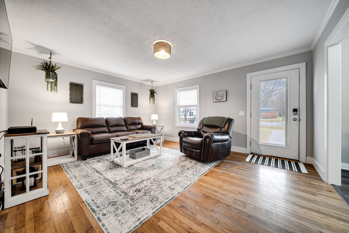 29 minutes from Titan’s Stadium (Nissan Stadium), Top Golf, Bridgestone Arena, Nashville Sounds - First Horizon Park, Geodis Park. Inviting home less than a mile from #DowntownGallatin coffee shops, boutiques, eateries. Set with Mid Century style, the furniture is comfy and cozy — new!! This home has a small footprint and fun feel. It was built in the 50’s, so let’s be honest, it’s NOT a new home and has its quirks that I call character. Coffee Maker + Fiber internet + Alexa + Dog Friendly