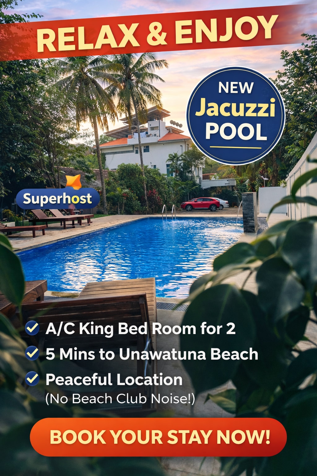 Warmly welcome to Kuki Beach 😊 Indulge in our serene Garden Suite with a ocean views, and access to a premier surf break and our sparkling swimming pool. Conveniently located just 30 minutes from Galle and 5 minutes from Ahangama town. Breakfast is included, with the option to hire a private chef or use our kitchen. Perfect for surfers, families, and couples seeking a peaceful escape with warm hospitality and tropical mornings by the sea.