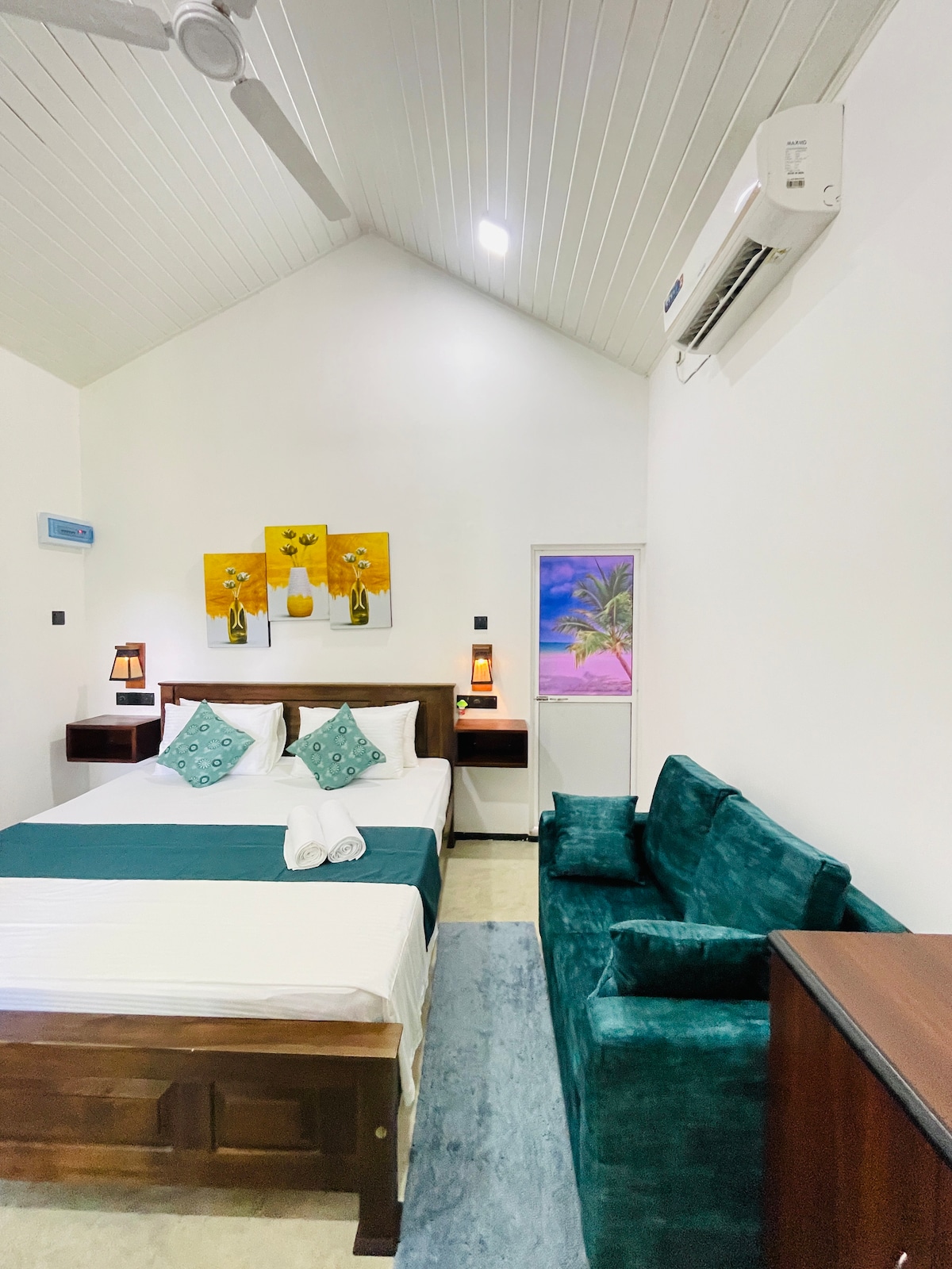 With a long coral reef all along the beach just 70m from the sand it forms our famous natural swimming pool. Sometimes you can swim with giant turtles. You can swim all year round and 24 hours a day. We provide all services you need. From airport transfers to tours or day trips, fishing, snorkeling along the reef to scuba diving from Unawatuna Dive Center, meals and drinks, Ayurveda Treatments to Yoga lessons. Just let us know what you love to do.