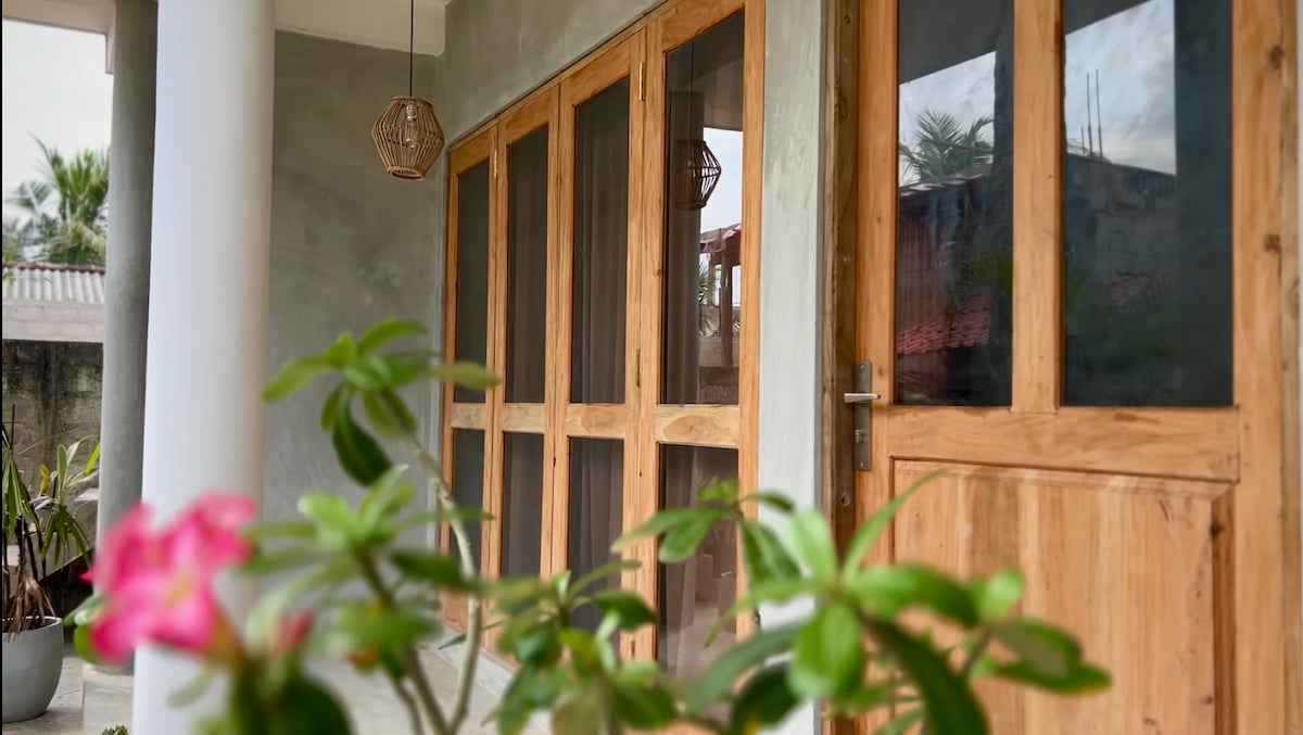 Sanara Villa in Weligama🙏, 5 min from 🌊🏖️🏄 surf beach by scooter🛵🏊, 10 min from Midigama🏄,15 min from Ahangama🏄,15 min from Mirissa🐬. Cozy and Green place🏡🧘, with Kitchen🍴, Bathroom, Double bed, Living room and Private Green Space Outside🌳🪺. Great Wifi to work remotely fiber wifi internet🧑💻 connection. Perfect to stay short and long period.🙏💐