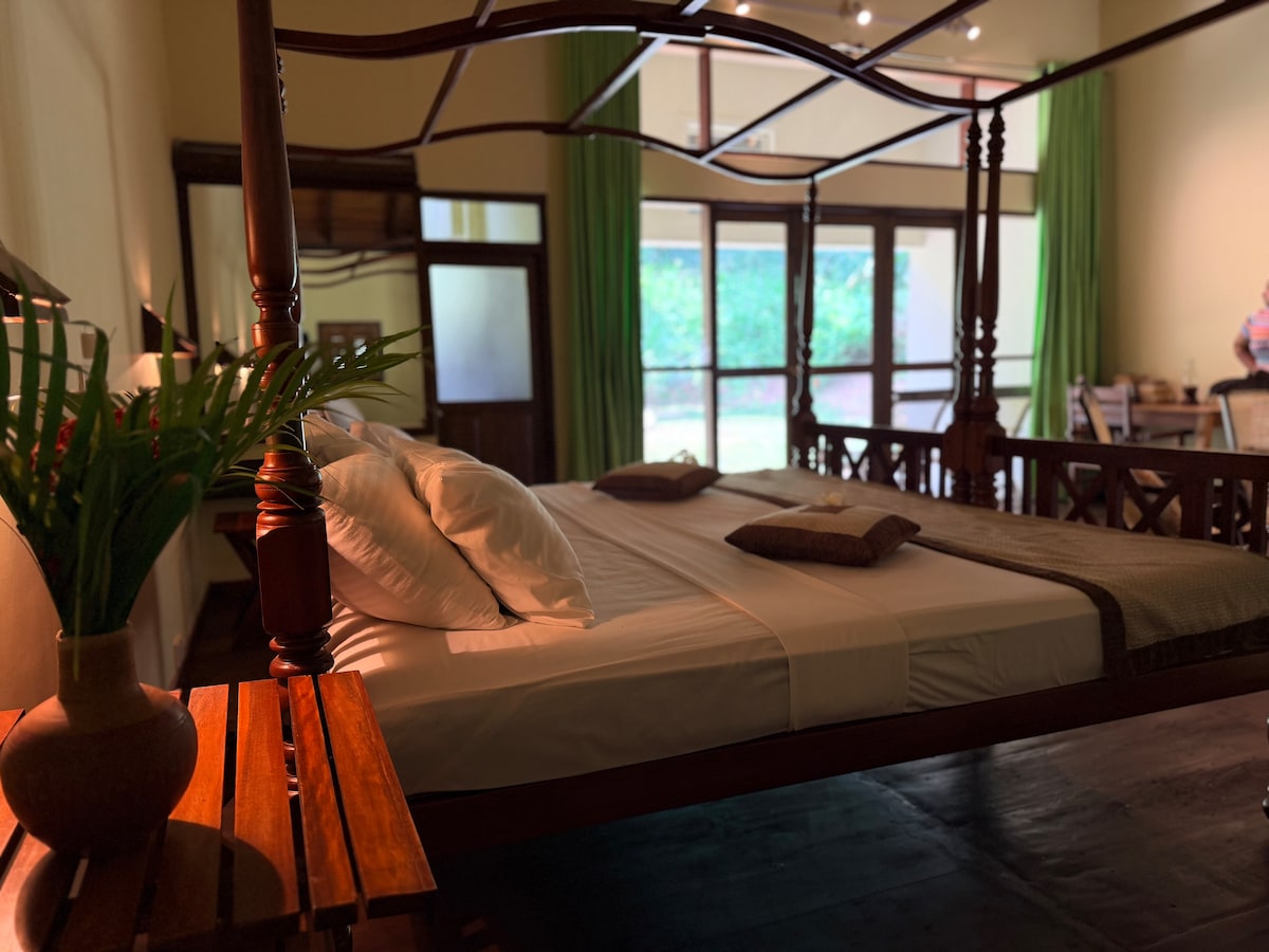 Discover a slice of coastal paradise in our luxurious beachfront suite. Boasting a king bed, attached bathroom, and a cozy kitchen, this haven promises rest and rejuvenation.Sip your morning coffee on the outdoor table, overlooking the serene beach, and breathe in the fresh ocean breeze from your private garden. Just a short drive away, explore the historic Galle Fort, bask in the sun at Unawatuna's golden shores and next door at turtle care center for gusts,you can meet turtles every day.