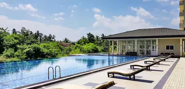Welcome to our cozy, nomad-friendly apartment in Galle Fairway Apartments, near Unawatuna beach. Perfect for long-term stays, this luxury space offers free WiFi, a living room with a Netflix-enabled TV, 2 bedrooms, and a fully equipped kitchen. Enjoy amenities like a gym, pool, kids pool, tennis court, squash court, and a rooftop with breathtaking views of Galle city and the sea. Find relaxation and productivity in this ideal retreat, where you can unwind, work, and explore the nearby beach.