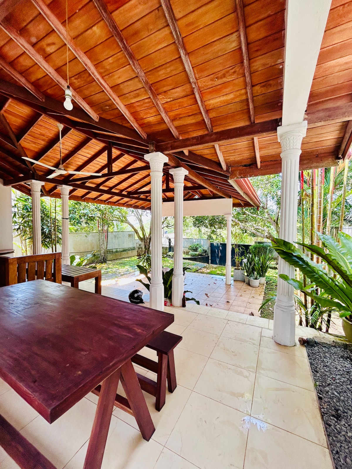 Name : Galle Vacation Located very close to historic Galle town, Dutch Fort and beach, a lovely traditional family 1 bedroom house beautifully restored set in a tropical garden. 3.4km to beach 1km to Thomas college 2.9km to Galle international college 3.1km to German-SriLanka Friendship Hospital for Women 3.4km to Karapitiya teaching hospital 4km to Galle Town 300m to SOS children's village &gym. 500m to supermarket With Air Conditioning+1300SLR/ night (around 3-4 USD)