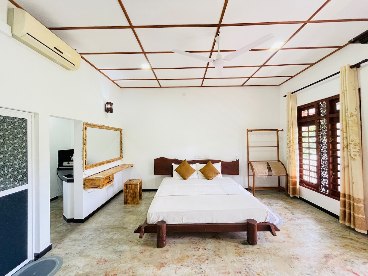 Experience comfort at Astro Villa’s first-floor suite, featuring an A/C bedroom, private kitchen, and bathroom. Relax on the balcony and soak in the tropical vibes, just a short distance from Weligama’s hotspots like Marriot, W15, and Kurumba Bay. Perfect for couples or solo travelers, this stylish space offers free Wi-Fi, parking, and a cozy ambiance. Whether you’re here for surfing, dining, or simply unwinding, this private getaway ensures a hassle-free and memorable stay.