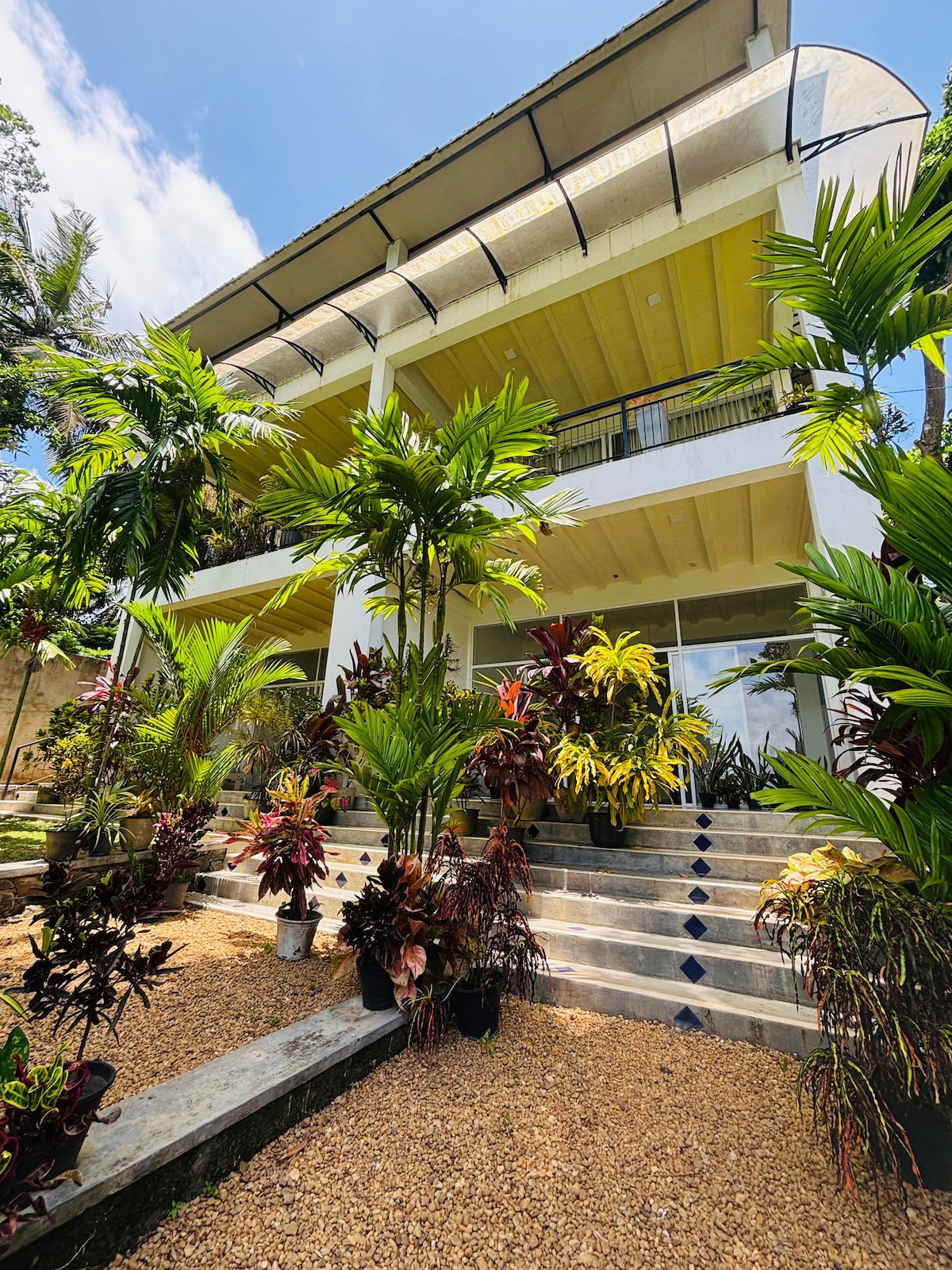 JUST RE-OPENED after re-painting etc Beautiful secluded eco friendly property set in a verdant lush tropical garden. Wake up to birdsong. Infinity Pool with a fabulous views over rice paddies of Hikkaduwa. The property is rented exclusively & price is based on a couple. Can accommodate up to 7 so please include total no of guests. Villa has 3 bedrooms with ensuites. We have a menu for other meals. The same meal needs to be ordered for group. Need minimum notice of 1 day for food orders.