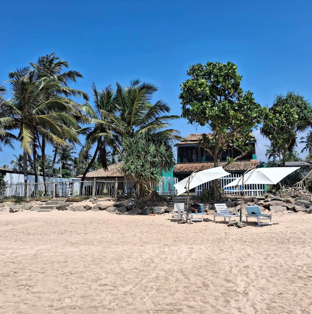 The whole group will be comfortable in this spacious and unique space. Located just 7km from the Galle city center, this stunning 3 bedroom (3 ensuite). An ideal hide-out for a relaxing and quiet atmosphere. Please note Wifi is at a cost.