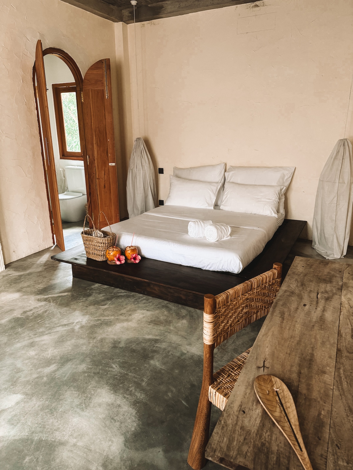Stylish King Room w/ Balcony, Kitchenette & Nespresso | In Kabalana 🛏️ Room Features king-sized bed Option to add a cozy wooden extra bed (ideal for a child or additional guest) Private en-suite bathroom with hot water Air conditioning Indoor seating area with chairs and a table for lounging or working Private balcony overlooking the garden – perfect for morning coffee or evening breeze Nespresso machine for your daily caffeine fix
