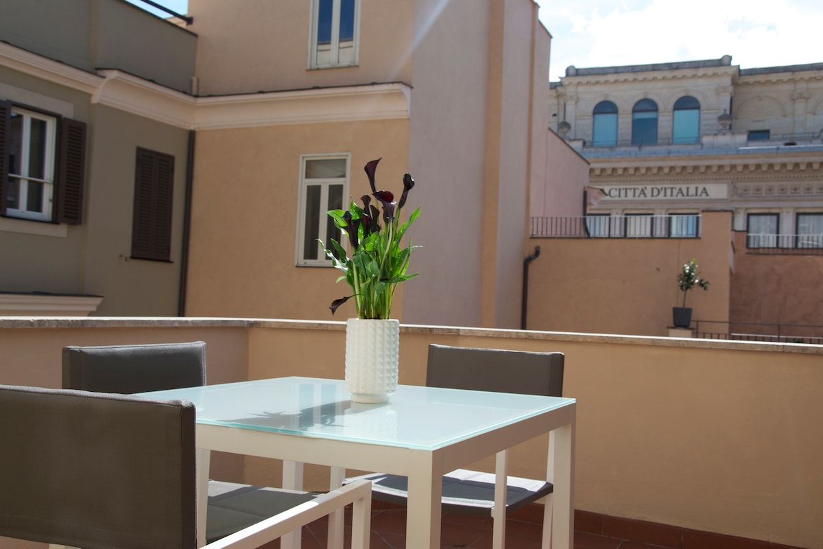 - Panoramic loft in one of Rome's best streets just a few steps from Piazza di Spagna. - Just steps away from the main sightseeing hotspots. - Extremely well positioned and connected to all major transport systems. -Gym a few steps away. - Electric window shades. - Very quiet. - Design furniture and accessories. - Very safe. - Large windows. - Sunny terrace with large sofas and dining table. - Chair lift for luggage. - Possibility of hiring a private driver to and from the airport.