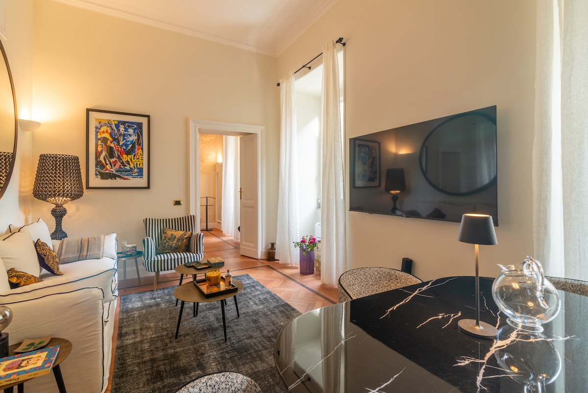 Royal Piazza di Spagna è un elegante appartamento nel cuore del centro storico di Roma, situato in un affascinante palazzo del 1700. La posizione è impareggiabile: a pochi passi dalle meraviglie della città. Il suo punto di forza è l’ampio balcone privato, perfetto per colazioni, pranzi o cene all’aperto. L’appartamento è dotato di Wi-Fi veloce, aria condizionata, una cucina attrezzata e un bagno ampio e moderno. Un rifugio esclusivo per vivere Roma con stile.