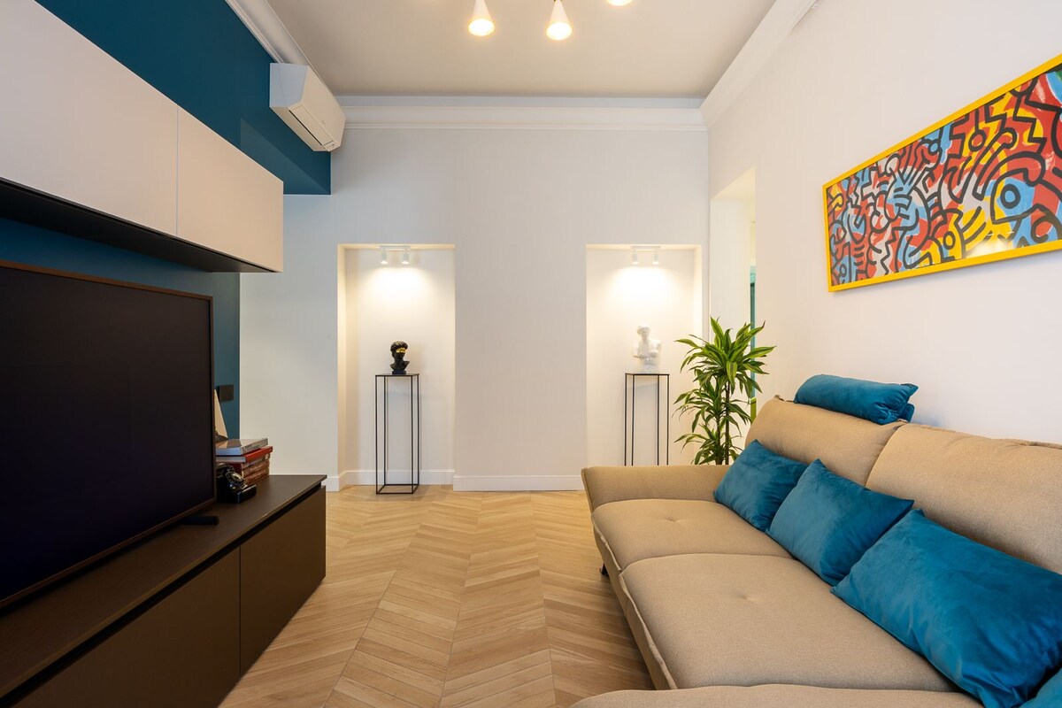 Elegant apartment in a prestigious historic building, just 50 m from Piazza Navona, the heart of Baroque Rome, surrounded by the famous fountains of Bernini and Borromini. Finely furnished, it offers two bedrooms with private bathrooms; the master bedroom features a whirlpool tub for moments of pure relax. On request, the sofa bed in the living room can accommodate additional guests. Its exclusive location and refined atmosphere make this accommodation perfect for an unforgettable stay.