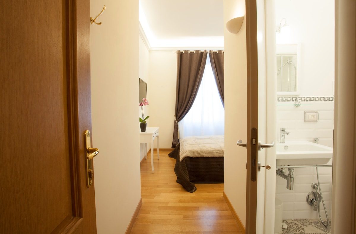 Located right in the heart of Rome’s historical centre, refined sunny triple/double room in cozy apartment, with air conditioning, private bathroom and shared kitchen. Coliseum and Domus Area are only 1 km away, as for Baths of Caracalla and Circus Massimo. The apartment is excellently connected by subway (line A) or main bus lines and it's located in one of the best neighborhoods of Rome including bars, restaurants, shops and green areas. The best choice for your travel!