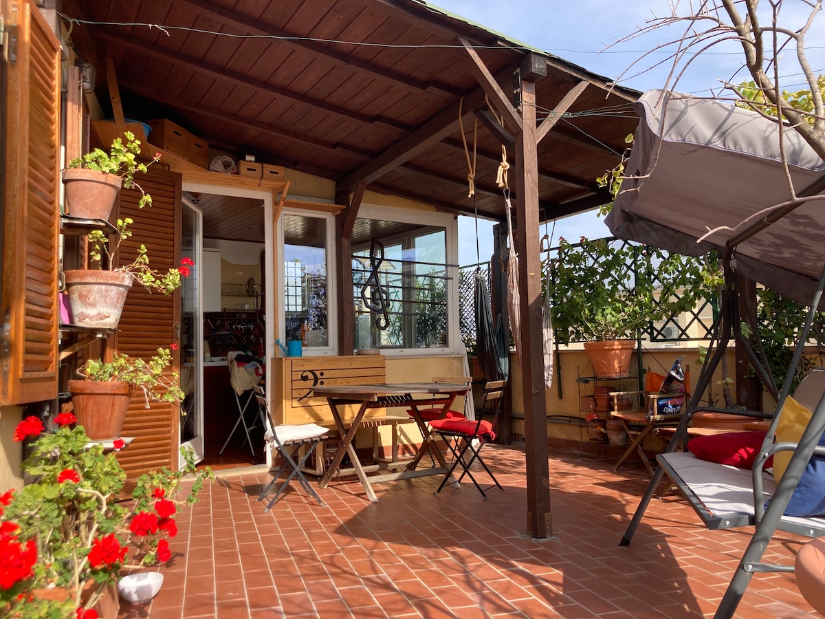 The flat is very spacious located in the heart of the most trendy area of Rome. There is a very large bedroom with a double bed and a single bed . In the living room a comfortable double-bed is placed onto the wooden mezzanine. The kitchen is equipped: fridge, washing machine and dishwasher. Soap for these machines is included as well as hand-soap, oil, salt, coffee and sugar. The outside patio is very characteristic and gives you a unique view of the roman charming historical center.