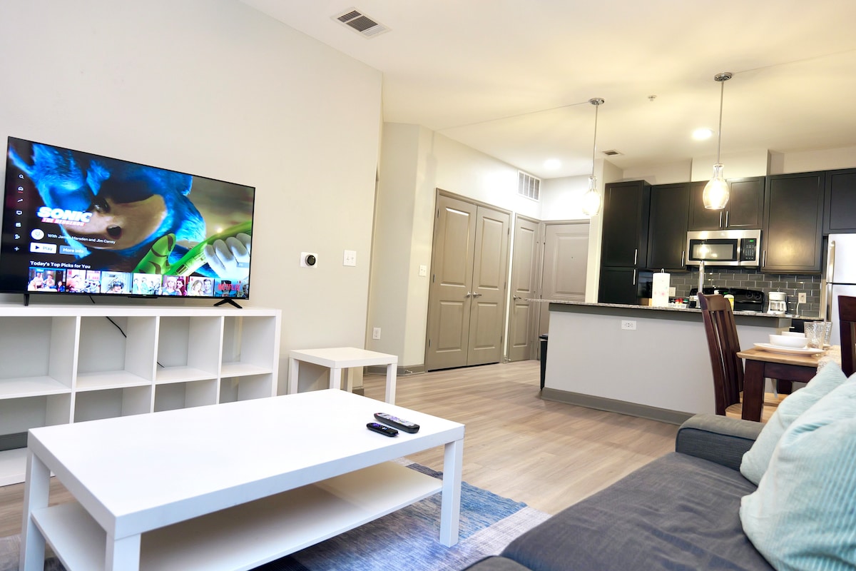 Just 20 minutes to Downtown Dallas and about 25 minutes to AT&T Stadium; host of upcoming FIFA World Cup matches. This stylish 2BR Midtown Dallas retreat offers comfort and convenience in a secure gated community, perfect for families, business travelers, or small groups. ✔ Resort-style pool with BBQ area ✔ Gym + residents’ lounge ✔ Dedicated workspace + fast Wi-Fi ✔ Fully equipped kitchen ✔ Free gated parking Only 5 minutes to Galleria Dallas.