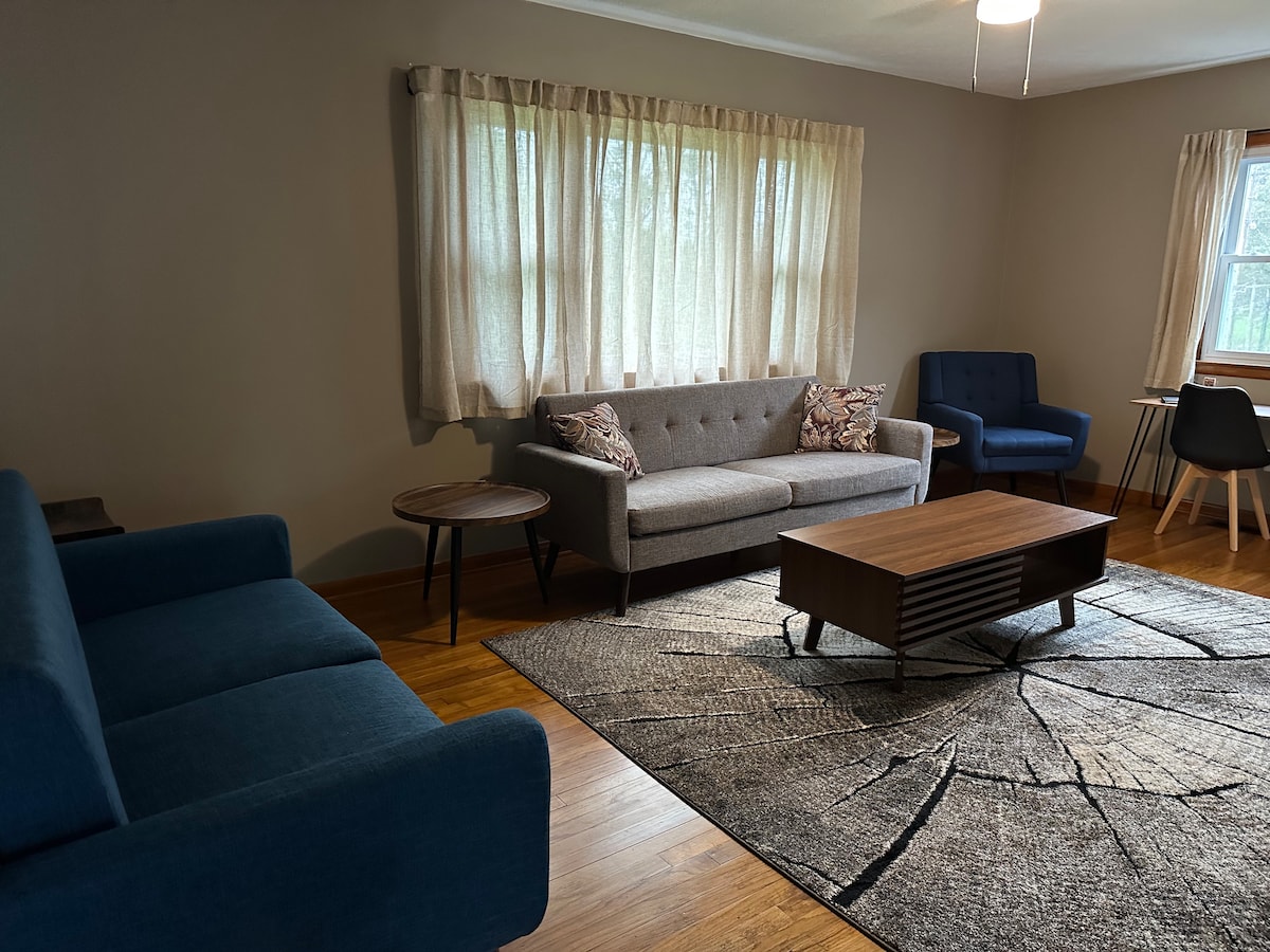 Take it easy at this calm and cozy hideaway. Our guest house is under the same roof as our main property but has completely separate/private entrances from ours. We are sitting on 6 acres with a pond at the top of the hill. Sitting on the porch or patio, you will find views of wildlife and livestock. This is the place to be for a break from the busy life. Designated parking under carport, Wifi, pet friendly, and access to pond.
