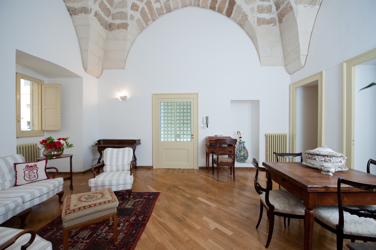 Nuvole Barocche is a stunning 110 sq m (1,185 sq ft) apartment on the 1st floor of an elegant 19th-century mansion in the heart of Lecce. Steps away from Piazza Sant’Oronzo, it offers the perfect mix of historic charm and space. Featuring 3 bedrooms and 2 full bathrooms, it comfortably accommodates up to 5 guests. Ideal for those seeking privacy, high ceilings, and a prime location near all main attractions. Private parking available.