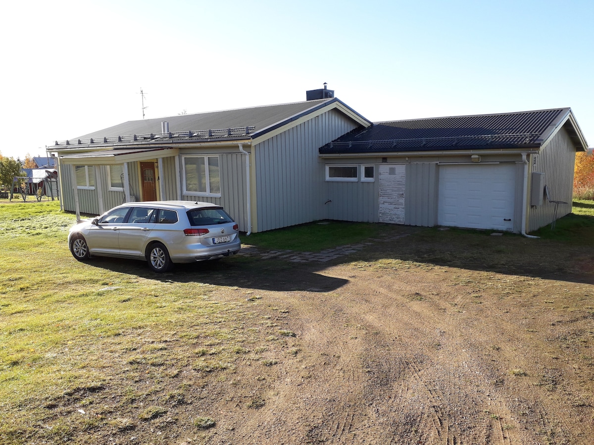 Old house 1929 two levels Kitchen, electric stove and woodburning stove Fridge, freezer, radiator TV room 5 channels Bedroom upstairs 2x 90 cm bed TV room 105 cm bed Bedlinen and towels included Toilet, bathtub with shower Washingmachine Coop 700m 2 km to slalomslope, crosscountry skitrails 140 km Luleå Airport LLA 19 km trainstn Murjek 42 km Jokkmokk's wintermarket Carparking 230V motorheater Charging 230V AC or Type2 11kW. 4 SEK/kWh. Swish/ PP No smoking No animal Hope You shovel snow