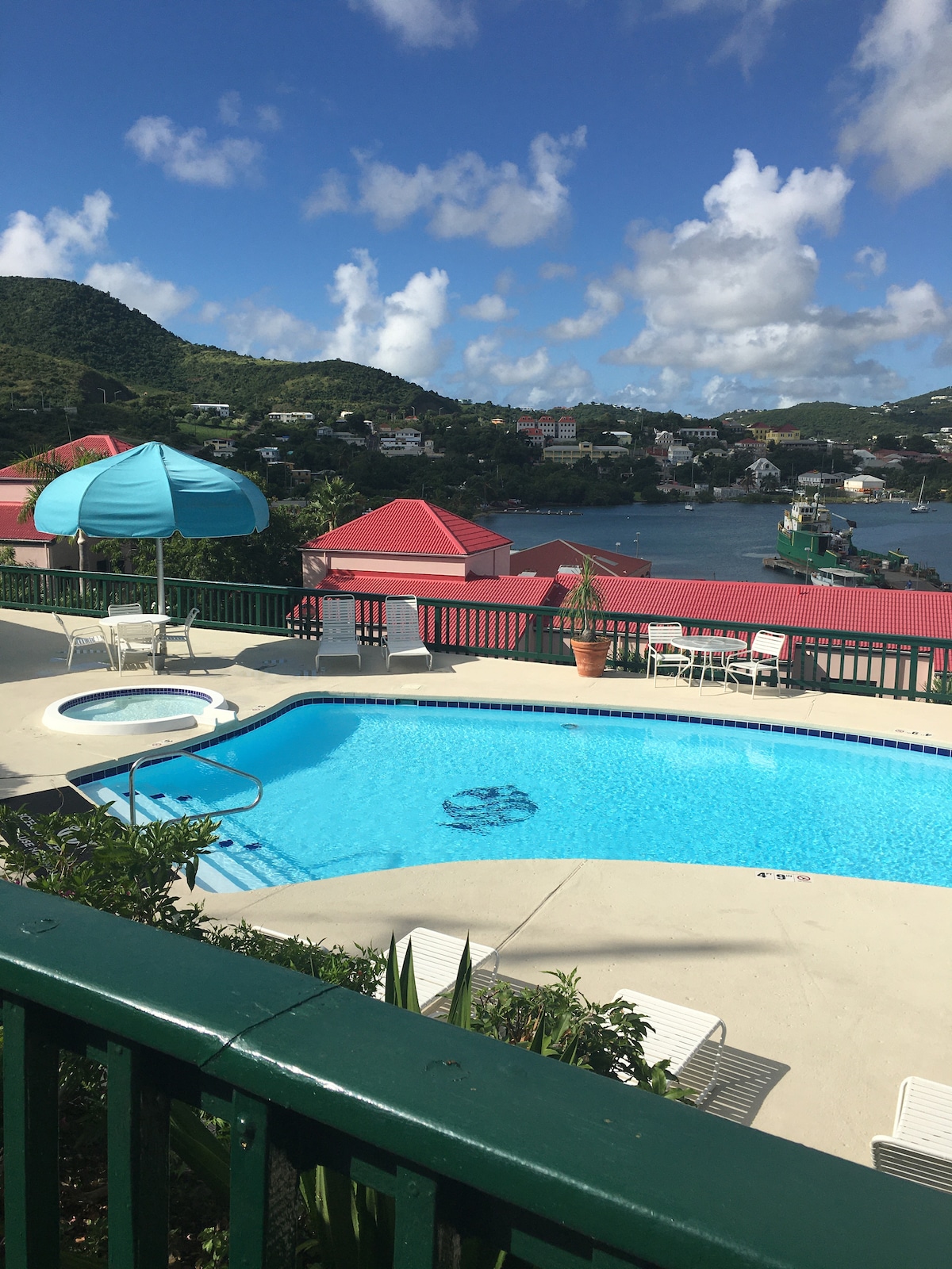 Fantastic, recently renovated luxury pool side apartment overlooking the Christiansted harbor and Buck island. This is an exclusive gated private residence nestled on Princesse Hill Estate, 2 miles from Christiansted town and 5 mins to local grocery stores, exclusive restaurants, and local beaches. Open your curtains and enjoy the breath taking views of the old Danish City, Buck island, and Green Key. Just want to relax? Enjoy direct access to the pool and hot tub steps away from your door.