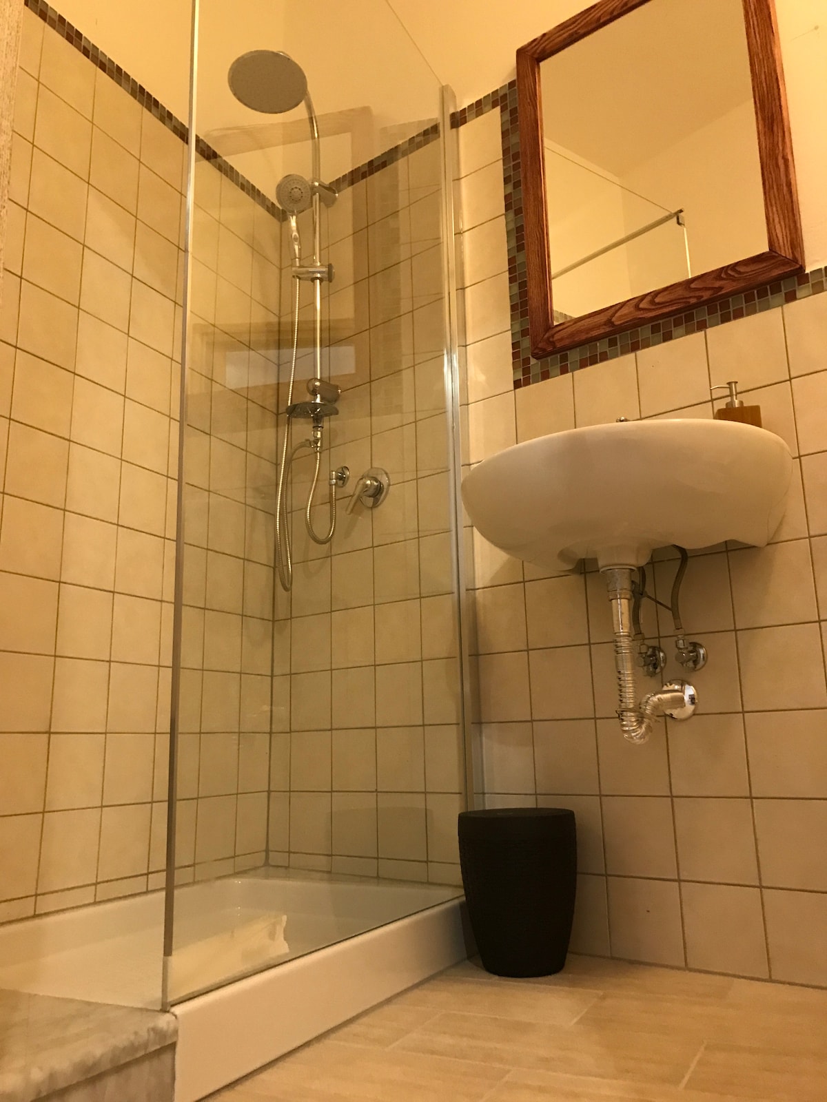 The Italia room is located on the second floor (no elevator) is large spacious with a double bed and two single beds. Suitable for families, it accommodates up to 4 people. It has a private bathroom, but it is not located inside the room, in fact you have to cross the common room to access it. It has a small balcony overlooking Via XX Settembre, one of the main pedestrian streets on the island. Independent air conditioning (hot/cold) and 40" LCD TV.
